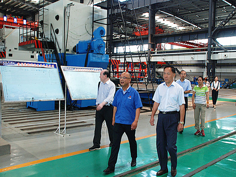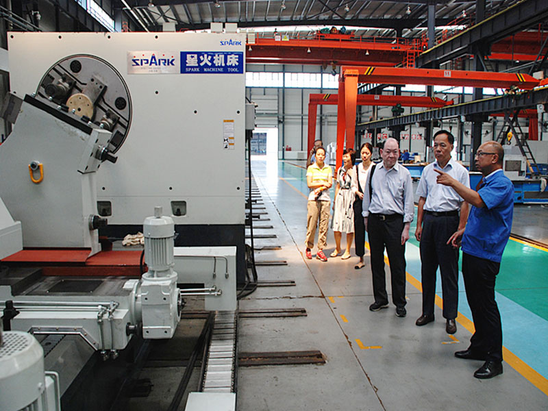 在蔣俊的陪同下,李國鋒、陳士發(fā)一行參觀了大型裝配分廠、數(shù)控精密分廠和大件加工分廠、噴包分廠生產(chǎn)現(xiàn)場。參觀過程中,蔣俊向客人介紹了企業(yè)發(fā)展歷程、目前經(jīng)營狀況、工業(yè)園建設(shè)情況及公司在行業(yè)的地位、產(chǎn)品研發(fā)和市場銷售情況。