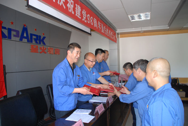 姚保忠說,今天我們在這里召開慶祝建黨98周年暨2018—2019年度先進(jìn)表彰大會,更是“不忘初心、牢記使命”主題教育活動的啟動和動員大會,主要目的是以習(xí)近平新時(shí)代中國特色社會主義思想為指導(dǎo),進(jìn)一步動員全體黨員投身到為星火脫困,重塑輝煌的事業(yè)當(dāng)中,振奮精神,開拓進(jìn)取,扎實(shí)工作,努力把生產(chǎn)經(jīng)營和黨建工作同促共進(jìn),高質(zhì)量發(fā)展黨建,為星火機(jī)床的持續(xù)發(fā)展努力奮斗。