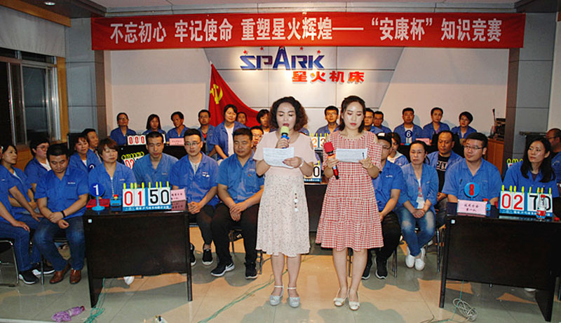 7月15日晚上的首場預(yù)賽開始前,星火機床公司黨委副書記、星火機床集團公司副總經(jīng)理、工會主席蔣俊講話指出,這次知識競賽圍繞“不忘初心、牢記使命”主題教育活動,和“安康杯”競賽活動開展的競賽活動,內(nèi)容涉及黨建知識、安全生產(chǎn)知識、企業(yè)發(fā)展和管理知識,這是公司通過開展形式多樣的活動,倡導(dǎo)全體員工大興學(xué)習(xí)之風(fēng)的一項具體舉措。希望通過這些活動,統(tǒng)一思想,鼓舞士氣,振奮精神,群策群力,共同努力,把星火的事情辦好。希望通過這樣的活動發(fā)現(xiàn)人才、鍛煉人才,使人才脫穎而出,祝愿每個參賽隊和參賽隊員取得優(yōu)異成績。