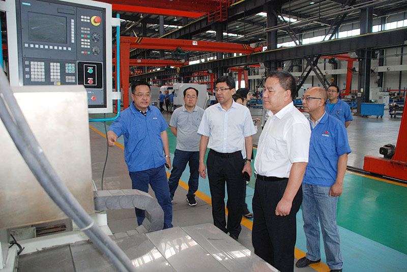 在蔣保權(quán)、蔣俊等領(lǐng)導(dǎo)的陪同下,劉軍一行深入企業(yè)生產(chǎn)現(xiàn)場,參觀了重型、大型、數(shù)控產(chǎn)品,了解了企業(yè)目前生產(chǎn)經(jīng)營情況和產(chǎn)品研發(fā)、市場銷售等,重點(diǎn)了解了企業(yè)境外投資規(guī)模、效益及需要協(xié)調(diào)解決的問題。蔣保權(quán)詳細(xì)介紹了公司境外投資及收益情況。