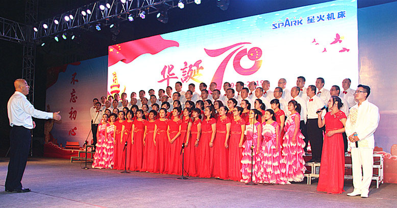 星火機(jī)床公司領(lǐng)導(dǎo)蔣保權(quán)、劉勝等,與部分老領(lǐng)導(dǎo)、勞模先進(jìn)工作者、職工家屬共同參加歌詠比賽,慶祝祖國(guó)生日。