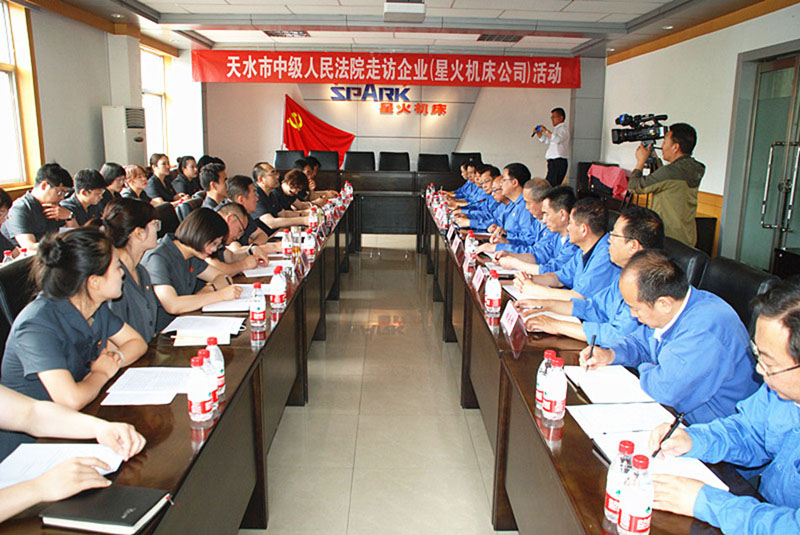 在星火機床集團公司領導陪同下,天水市中級人民法院領導、法官一行,先后深入工業(yè)園各生產現(xiàn)場和公司本部部分單位,參觀了生產現(xiàn)場、機床產品和公司展廳。