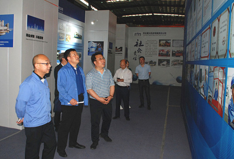 星火機(jī)床集團(tuán)公司總經(jīng)理劉勝、副總經(jīng)理蔣俊等陪同蘭州市工信局考察組一行參觀了星火工業(yè)園各單位生產(chǎn)現(xiàn)場和公司展廳,觀看了公司研發(fā)生產(chǎn)的各類機(jī)床產(chǎn)品。