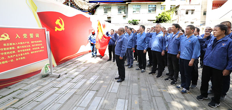 在徽成兩康戰(zhàn)役紀(jì)念館,星火機(jī)床集團(tuán)及公司領(lǐng)導(dǎo)和黨員干部面對(duì)鮮紅黨旗,整齊列隊(duì),在黨委副書記蔣俊同志的帶領(lǐng)下重溫入黨誓詞。隨后,紀(jì)念館講解員講解了1936年紅二方面軍在徽(縣)成(縣)兩(當(dāng))康(縣)戰(zhàn)役中,毛澤東安排有關(guān)兩當(dāng)、徽縣工作的書信,紅二方面軍總指揮賀龍,政治委員任弼時(shí)、副政治委員關(guān)向應(yīng)等指揮戰(zhàn)斗的情景,參觀了賀龍贈(zèng)送給當(dāng)?shù)卣拇笞姡R龍鬧革命的兩把菜刀(復(fù)制品)等革命文物、歷史資料照片。同時(shí)了解了當(dāng)年徽縣底下黨組織開展斗爭(zhēng)的歷史。