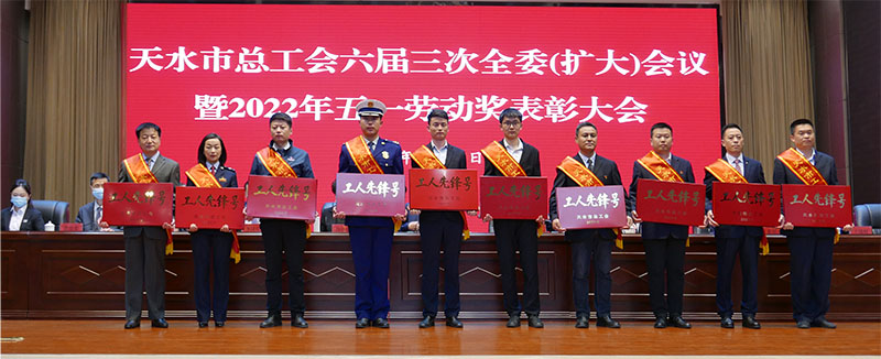 4月29日,天水市總工會召開六屆三次全委(擴大)會議暨2022年五一勞動獎表彰大會,全市各條戰(zhàn)線涌現(xiàn)出的9個先進(jìn)集體、20名先進(jìn)個人、10個先進(jìn)班組分別被授予天水“五一勞動獎狀”“五一勞動獎?wù)隆焙汀?/span>工人先鋒號”,受到大會表彰。