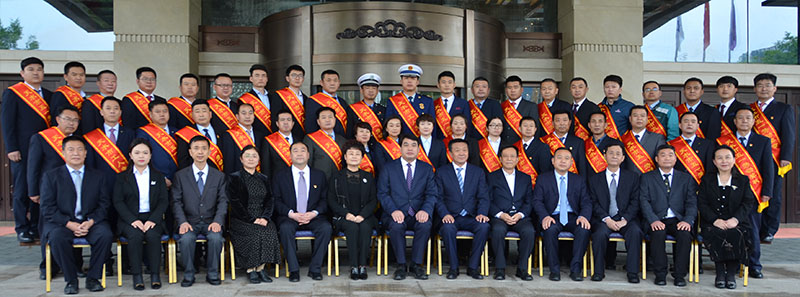 會前,與會領(lǐng)導(dǎo)與受到表彰的人員合影。