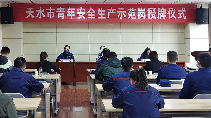 4月27日,團(tuán)市委、市應(yīng)急管理局舉行天水市青年安全生產(chǎn)示范崗授牌儀式,受表彰的8個單位的團(tuán)委書記等30余人參加會議。