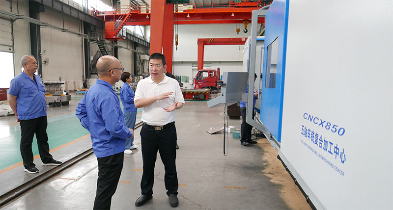 陳海龍一行參觀了公司研發(fā)生產(chǎn)的各類機(jī)床產(chǎn)品,認(rèn)真聽取了集團(tuán)公司黨委副書記、副總經(jīng)理蔣俊關(guān)于企業(yè)發(fā)展歷程、技術(shù)研發(fā)能力、生產(chǎn)經(jīng)營情況、市場(chǎng)前景、項(xiàng)目建設(shè)進(jìn)展及公司“十四五”發(fā)展規(guī)劃等情況介紹,詳細(xì)詢問了企業(yè)上半年生產(chǎn)經(jīng)營工作,特別是企業(yè)目前存在的主要困難和問題。
