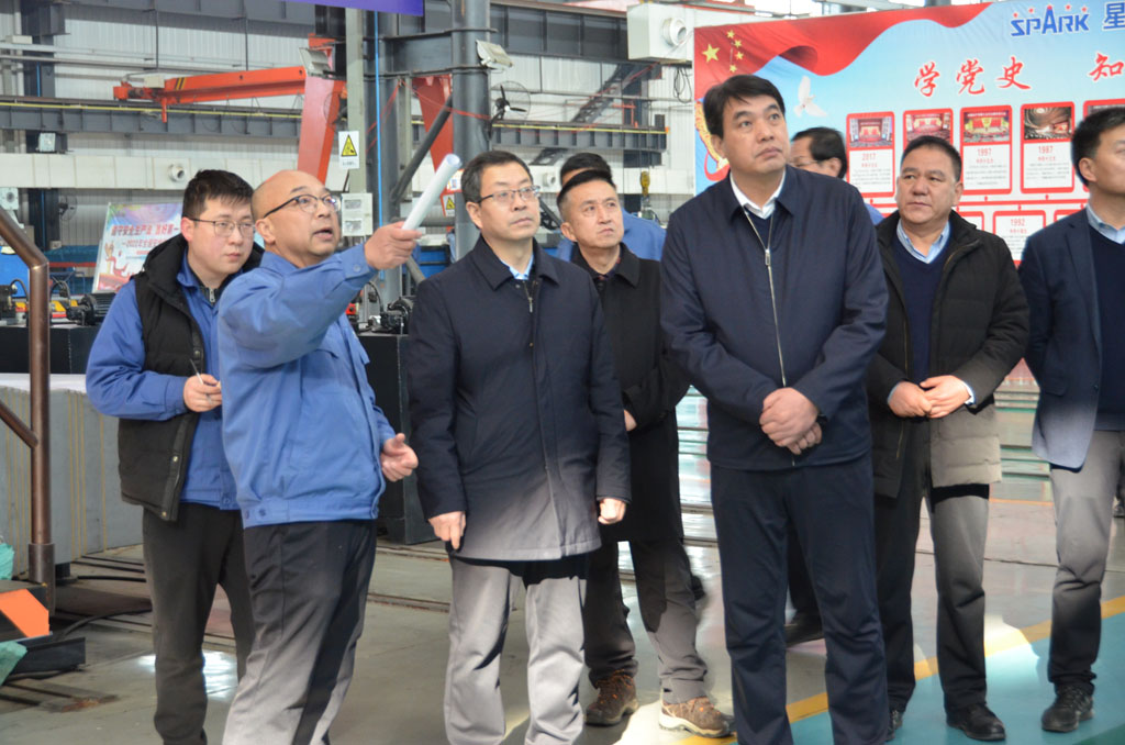 包俊宗一行在實(shí)地調(diào)研時(shí),不時(shí)駐足觀看公司特色產(chǎn)品,詳細(xì)了解了企業(yè)科技創(chuàng)新等情況。調(diào)研中,蔣俊向包俊宗一行重點(diǎn)介紹了公司自主研制的五軸聯(lián)動(dòng)數(shù)控機(jī)床、數(shù)控纏繞機(jī)床、專用機(jī)床等高端產(chǎn)品的科技創(chuàng)新和市場(chǎng)應(yīng)用情況。