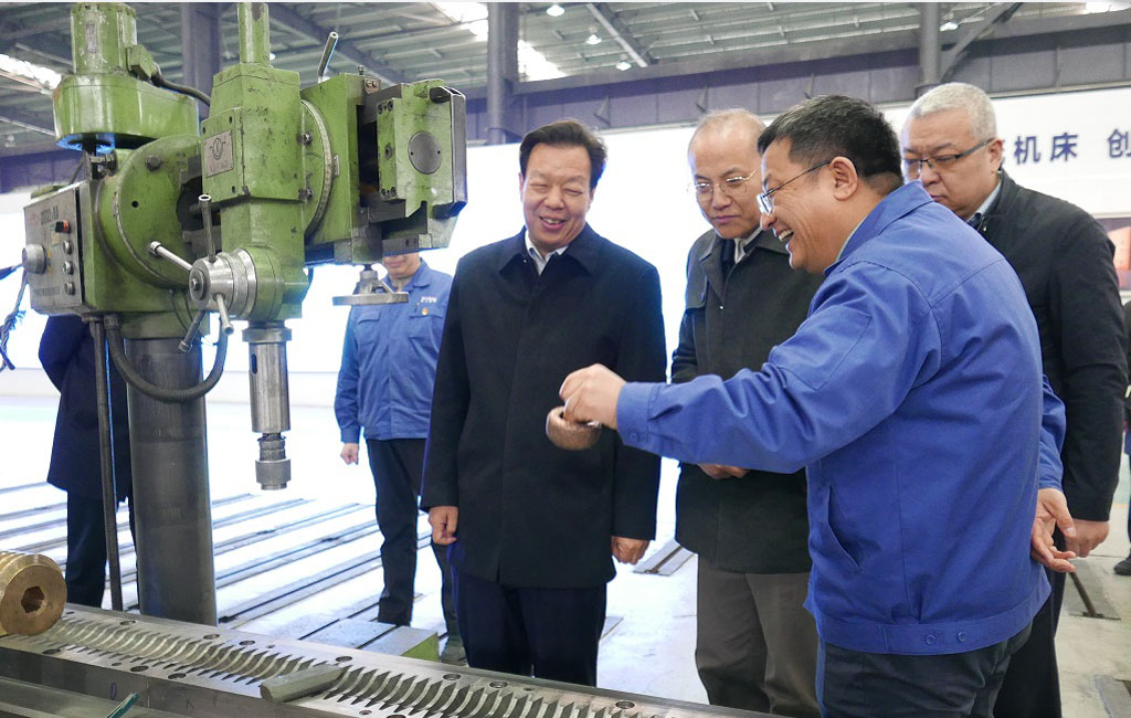 2月27日,陳得信副省長一行到星火機(jī)床公司調(diào)研企業(yè)生產(chǎn)經(jīng)營、科技創(chuàng)新、項(xiàng)目建設(shè)等情況。省政府副秘書長王振清,省科技廳廳長張世榮,省工信廳廳長盛云峰,天水市委副書記、市長王國先,副市長胡志勇等人陪同調(diào)研。