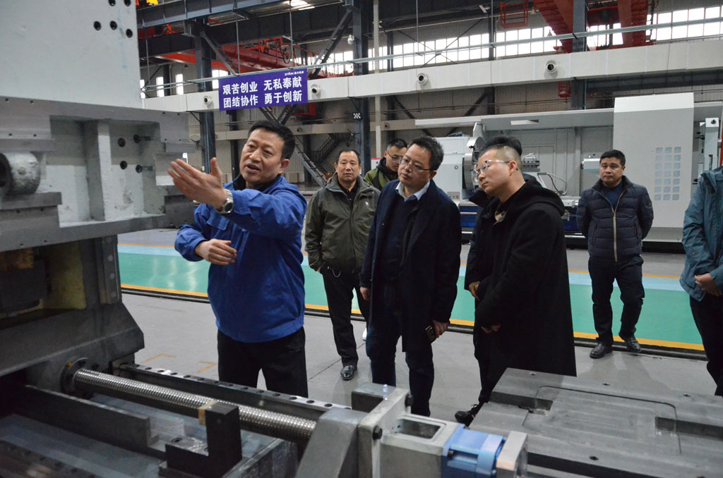 調(diào)研中,劉勝通向調(diào)研組匯報(bào)了公司作為國(guó)家專精特新“小巨人”在適應(yīng)國(guó)家發(fā)展戰(zhàn)略、強(qiáng)工業(yè)強(qiáng)科技、服務(wù)地方經(jīng)濟(jì)建設(shè)、促進(jìn)技術(shù)創(chuàng)新方面發(fā)揮的作用,介紹了公司生產(chǎn)經(jīng)營(yíng)基本情況,陪同參觀了企業(yè)自主研發(fā)生產(chǎn)的高端數(shù)控纏繞機(jī)床、大型五軸聯(lián)動(dòng)車銑復(fù)合加工機(jī)床、高精度全自動(dòng)大型數(shù)控軋輥磨床、船舶用超大直徑筒體加工專用機(jī)床等各類高端數(shù)控機(jī)床、重型機(jī)床和專用機(jī)床的特點(diǎn)、用途、應(yīng)用領(lǐng)域及市場(chǎng)前景,以及企業(yè)在解決高端數(shù)控機(jī)床研發(fā)生產(chǎn) “卡脖子”難題、實(shí)現(xiàn)“破卡替代”方面所做的工作和取得的成效。