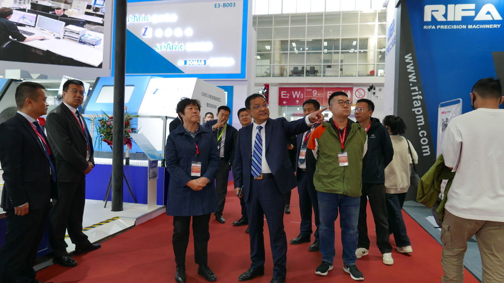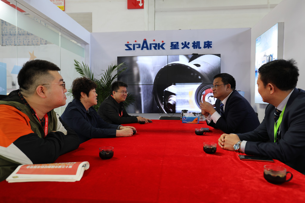 4月15日, 甘肅省國有資產(chǎn)投資集團(tuán)有限公司黨委委員、副總經(jīng)理王文秀,甘肅國投集團(tuán)總法律顧問、風(fēng)控審計(jì)部部長楊林軍等一行3人蒞臨北京國際機(jī)床展星火展位參觀。