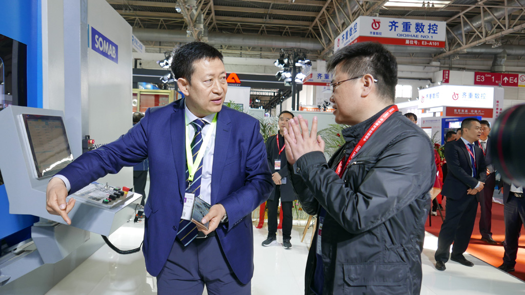 座談中,蔣保權(quán)向王文秀詳細(xì)介紹了公司展品的突出優(yōu)勢和火爆的參展效果,分析了目前機(jī)床行業(yè)發(fā)展形勢。