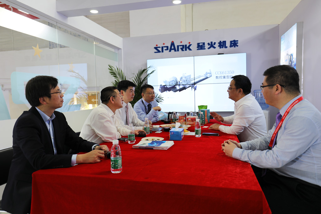 4月13日,西門子(中國)有限公司數(shù)控系統(tǒng)業(yè)務(wù)總經(jīng)理段龍、業(yè)務(wù)總監(jiān)錢赟、業(yè)務(wù)西區(qū)總監(jiān)簡軍一行到星火機床集團公司展位參觀。