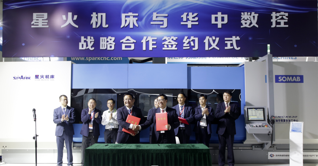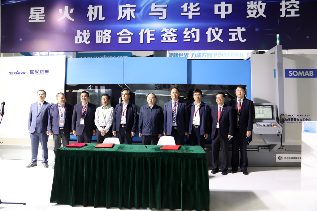 4月10日下午,展會開幕當天,星火機床集團公司與華中數(shù)控簽訂戰(zhàn)略合作協(xié)議。我國著名機械工程專家、中國工程院院士,教育部原部長、中國工程院原院長周濟先生,甘肅省軍民融合辦副主任王懷勝、省工信廳巡視員李開明、省科技廳巡視員梁云升及省市相關(guān)部門領(lǐng)導應邀參加簽約儀式。雙方企業(yè)將以此為契機,深度融合,創(chuàng)新發(fā)展,發(fā)揮各自優(yōu)勢,在更寬領(lǐng)域、更大空間實現(xiàn)資源共享,共同為推進我國工業(yè)母機發(fā)展而不懈努力。
