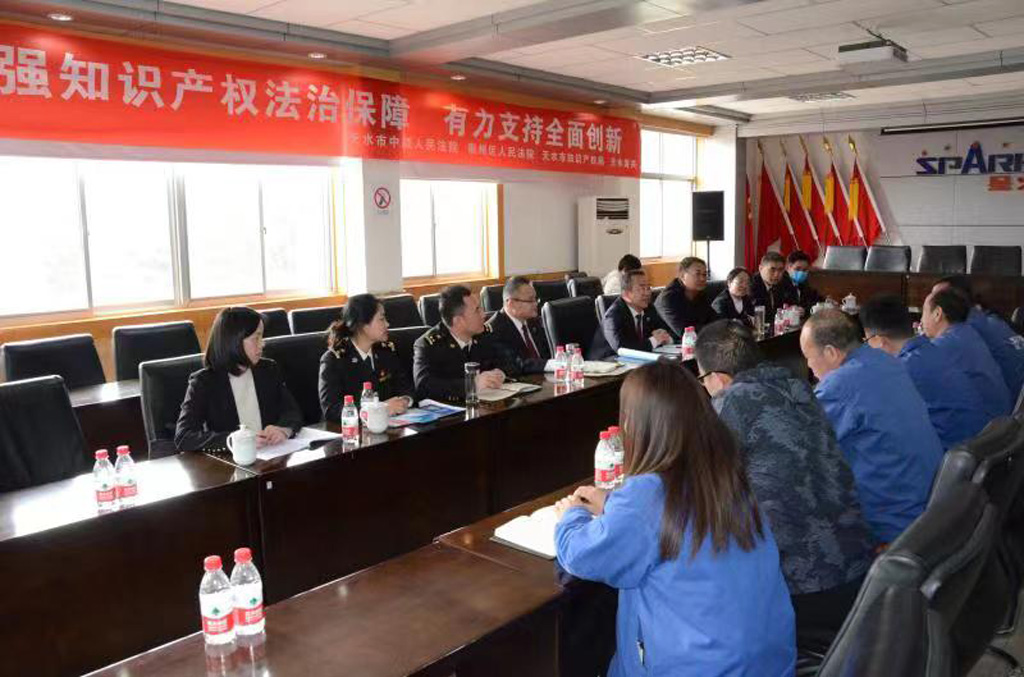 4月24日,以天水市中級人民法院民二庭庭長朱金平為組長,由天水市中級人民法院、秦州區(qū)人民法院、天水市知識產(chǎn)權(quán)局和天水海關(guān)有關(guān)領(lǐng)導(dǎo)和專業(yè)人員組成的服務(wù)組,在星火機(jī)床公司開展“加強(qiáng)知識產(chǎn)權(quán)法治保障,有力支持全面創(chuàng)新”為主題優(yōu)化營商環(huán)境、支持企業(yè)全面創(chuàng)新服務(wù)活動,并與企業(yè)相關(guān)業(yè)務(wù)部門負(fù)責(zé)人座談。