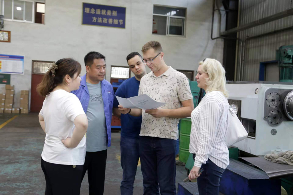 6月26日上午,來自俄羅斯ALIANS公司及ELsib公司的客商一行6人到星火機(jī)床公司參觀考察,銷售部部長(zhǎng)何曉東陪同參觀了生產(chǎn)現(xiàn)場(chǎng)并向客商介紹了企業(yè)發(fā)展歷程、技術(shù)實(shí)力、研發(fā)能力以及產(chǎn)品種類等情況。