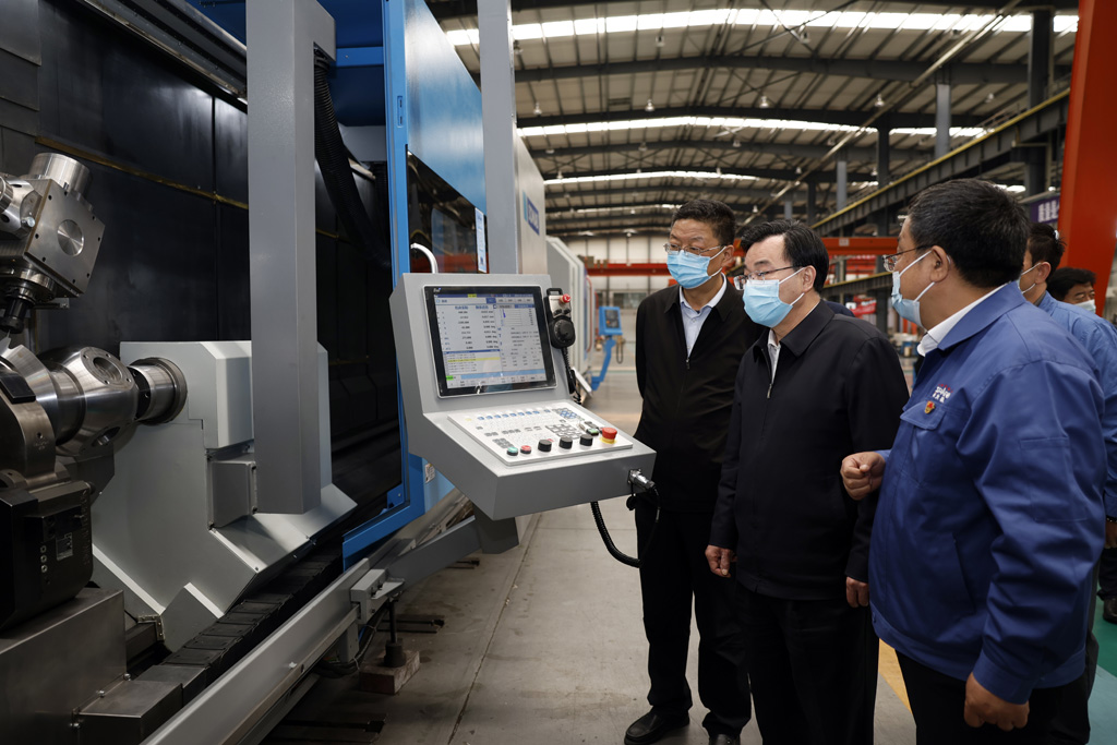 調研結束時,胡書記發(fā)表了重要講話,他指出:“這個企業(yè)很有前景,體現在幾個方面,一是在不斷的創(chuàng)新,實現了專精特新,是正兒八經的專精特新企業(yè)。沒想到天水還有這樣的企業(yè),有創(chuàng)新能力,企業(yè)發(fā)展勢頭也很好。我也看過很多機床企業(yè),你們做的很好,有自己的特點。你們研發(fā)的復合材料纏繞設備,制造的超長、直徑超大重型機床,聯合北京郵電學院、武船等單位和自己的制造優(yōu)勢結合起來,解決了“卡脖子”問題,而且今后的需求量會很大,為國家服務,國之大者要點贊。要發(fā)揮這些優(yōu)點,要繼續(xù)創(chuàng)新,要善于將別人的優(yōu)勢和自身優(yōu)勢巧妙結合起來,把別人的長處變成自己的長處,提升企業(yè)的綜合實力?!?