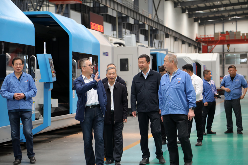 星火機(jī)床集團(tuán)公司副總經(jīng)理趙錦銘,星火公司副總經(jīng)理劉生玉陪同參觀生產(chǎn)現(xiàn)場(chǎng)。