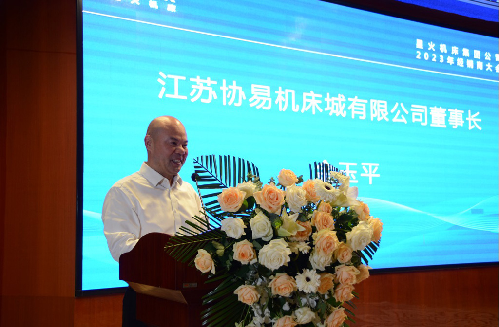 江蘇協(xié)易機床城有限公司董事長金玉平代表優(yōu)秀經(jīng)銷商致辭。他說星火機床作為發(fā)展了五十多年的“三線企業(yè)”,技術實力雄厚,品牌知名度,尤其近年來發(fā)揮自身優(yōu)勢,搶抓市場機遇,在攻克關鍵核心技術領域“卡脖子”難題方面取得了一定成績,拓展了一定的產(chǎn)品市場。我們對未來合作充滿信心,愿與星火同心同德,攜手并肩作戰(zhàn),實現(xiàn)合作共贏。