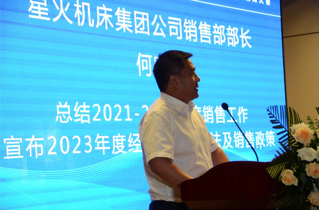 最后,星火機床集團公司銷售部部長何曉東對本屆經(jīng)銷商獲獎情況作了說明,總結了2021——2022年的銷售工作,并宣布了2023年度經(jīng)銷商獎勵辦法及銷售政策等。