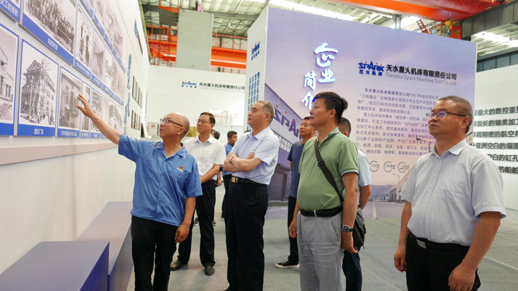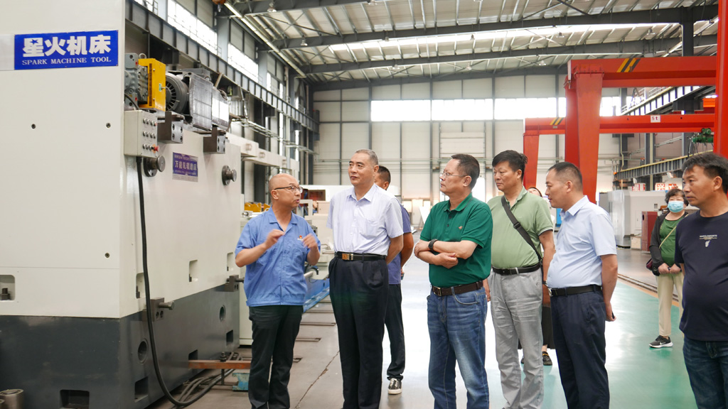 在星火機床公司裝配生產現場,孫昌春一行聽取了集團公司黨委副書記、副總經理蔣俊關于公司生產經營、產品研發(fā)、科技創(chuàng)新、項目建設及未來發(fā)展規(guī)劃等情況介紹,參觀了公司研發(fā)生產的高端數控纏繞機床、五軸聯(lián)動機床、數控斜床身機床等產品,詳細了解了各種產品的應用領域及性能特點。