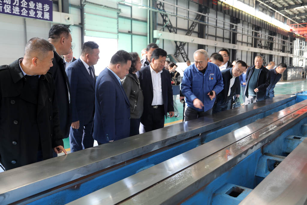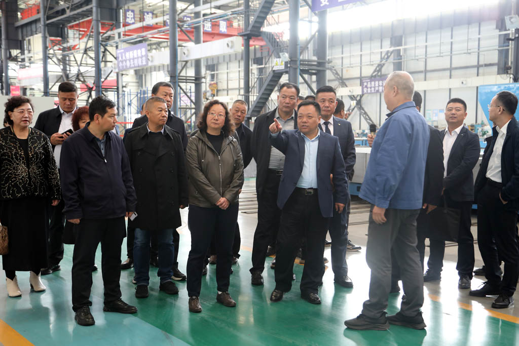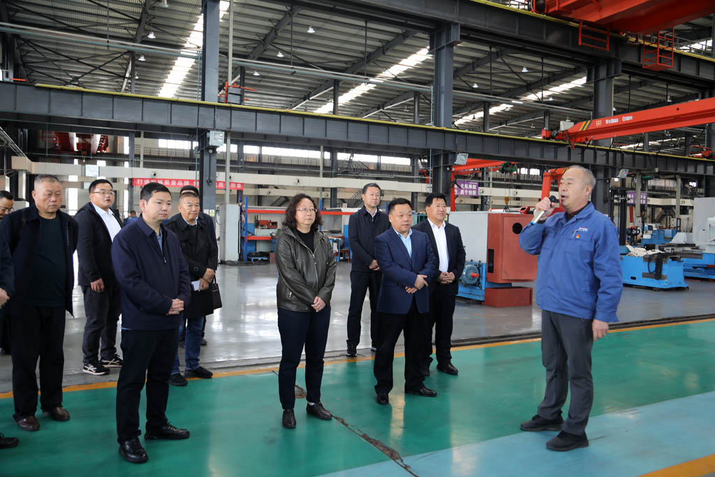 郝效冬一行深入公司裝配生產(chǎn)現(xiàn)場,詳細了解了公司歷史沿革、基本情況、產(chǎn)品研發(fā)、項目建設(shè)等情況,并參觀了公司自主研發(fā)生產(chǎn)的萬能軋輥磨床、五軸聯(lián)動機床、復合材料纏繞機床、重型臥式車床等產(chǎn)品。