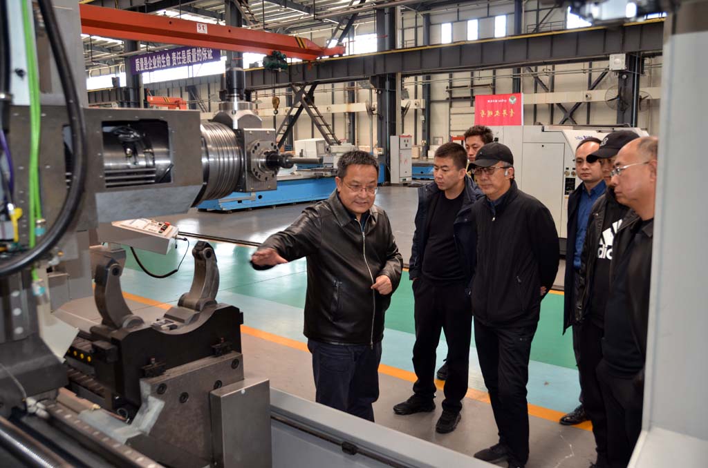 蔣保權(quán)等陪同敬君生一行參觀了公司研發(fā)生產(chǎn)的大重型機(jī)床、五軸聯(lián)動(dòng)數(shù)控精密機(jī)床、復(fù)合材料纏繞設(shè)備,以及星火青重公司生產(chǎn)的車輪車床、軋輥車床等用于國(guó)民經(jīng)濟(jì)各行業(yè)和航空、軍工、船舶、核電、鐵路等領(lǐng)域的各種新產(chǎn)品,并介紹了產(chǎn)品的工作原理、市場(chǎng)份額及企業(yè)發(fā)展前景。