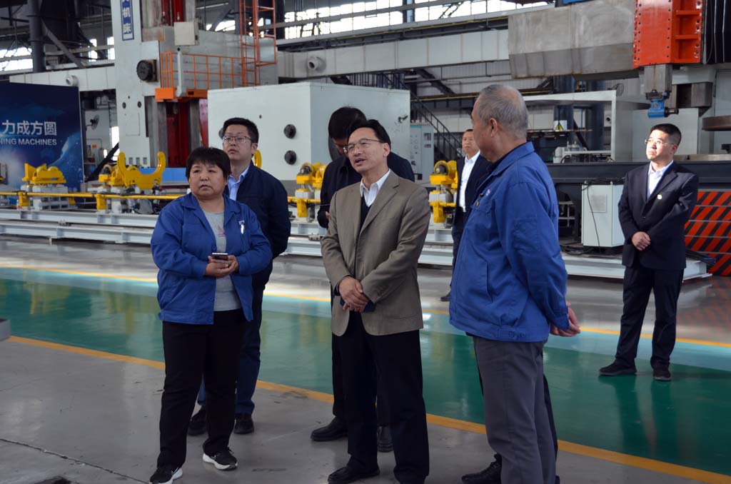星火機(jī)床集團(tuán)公司副總經(jīng)理、星火公司總經(jīng)理趙錦銘,星火公司總經(jīng)理助理、機(jī)床研究院常務(wù)副院長(zhǎng)展海瑜等陪同王再興一行深入星火工業(yè)園生產(chǎn)現(xiàn)場(chǎng)參觀,介紹公司產(chǎn)品、5G融合創(chuàng)新、數(shù)字化建設(shè)項(xiàng)目等情況。