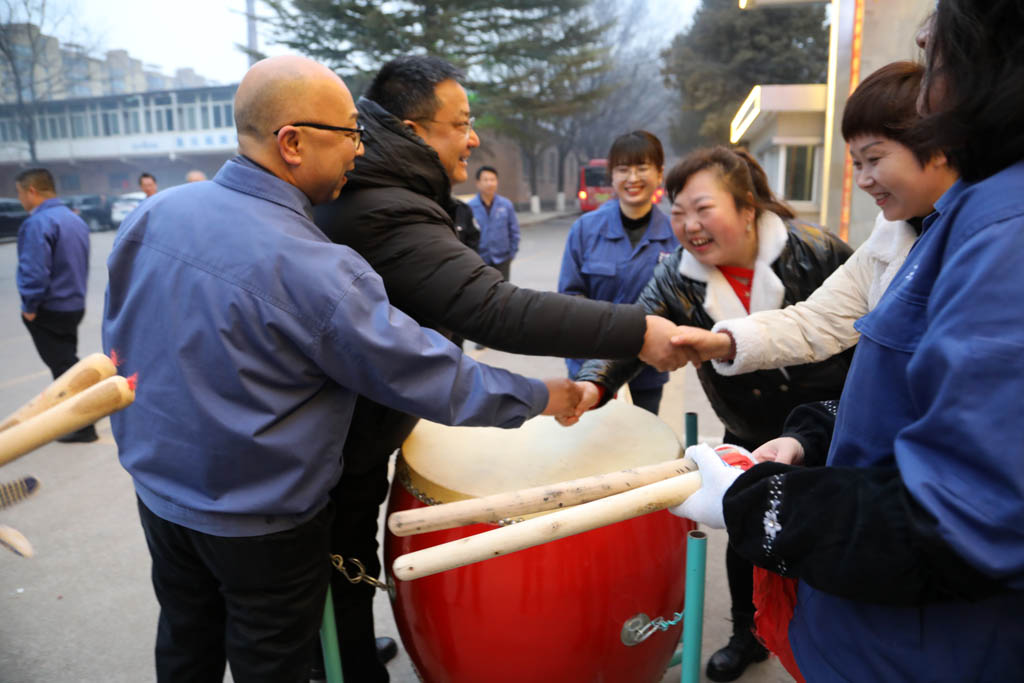 2月18日(正月初九)早上7點(diǎn)40分左右,星火機(jī)床集團(tuán)公司大門口鑼鼓喧天、鞭炮齊鳴、煙花四射。集團(tuán)公司領(lǐng)導(dǎo)班子蔣保權(quán)一行伴隨著歡快的音樂旋律和絢麗的煙花,隊(duì)列迎接每一位上班的職工,向廣大職工如期返回公司工作表示誠(chéng)摯的敬意并為他們送上新春的問候!大家見面之后臉上洋溢著燦爛的笑容并相互拜年問好。