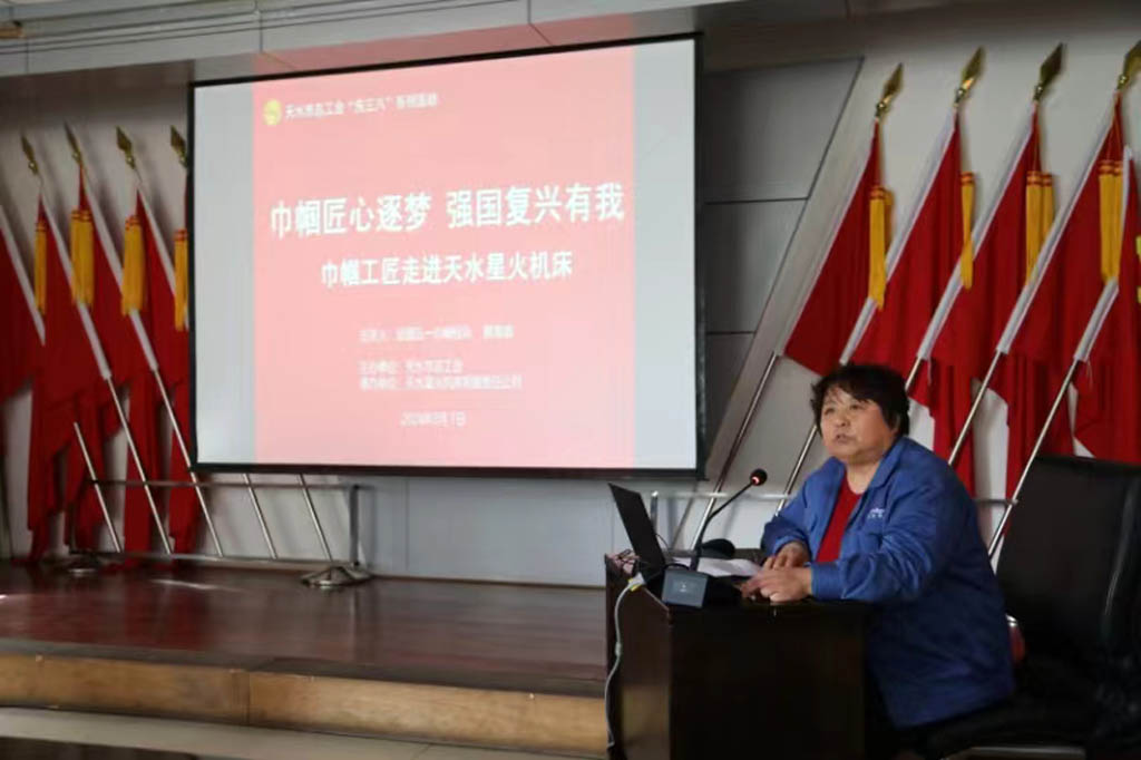 匯聚巾幗,匠心筑夢(mèng)。在“巾幗匠心逐夢(mèng),強(qiáng)國(guó)復(fù)興有我”為主題的宣講中,全國(guó)五一巾幗標(biāo)兵、省勞模、星火機(jī)床集團(tuán)公司機(jī)床研究院常務(wù)副院長(zhǎng)展海瑜結(jié)合自身工作經(jīng)歷,用最樸實(shí)的語言向大家講述了自己的成長(zhǎng)經(jīng)歷、人生感悟和拼搏奮進(jìn)的故事。她鼓勵(lì)大家在工作、生活中自省、自律、自強(qiáng),正確認(rèn)識(shí)自己、正確對(duì)待工作,處理好工作和生活、家庭和社會(huì)、個(gè)人與企業(yè)的關(guān)系,珍惜崗位,創(chuàng)先爭(zhēng)優(yōu),以昂揚(yáng)的斗志、飽滿的熱情在平凡崗位上唱響“婦女能頂半邊天”的時(shí)代最強(qiáng)音。