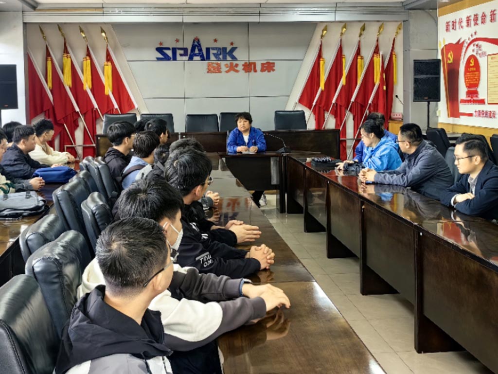 4月23日,蘭州理工大學(xué)機(jī)電學(xué)院老師靳嵐帶領(lǐng)2020屆機(jī)械設(shè)計(jì)制造專業(yè)35名大學(xué)生來(lái)星火機(jī)床公司參觀學(xué)習(xí)。