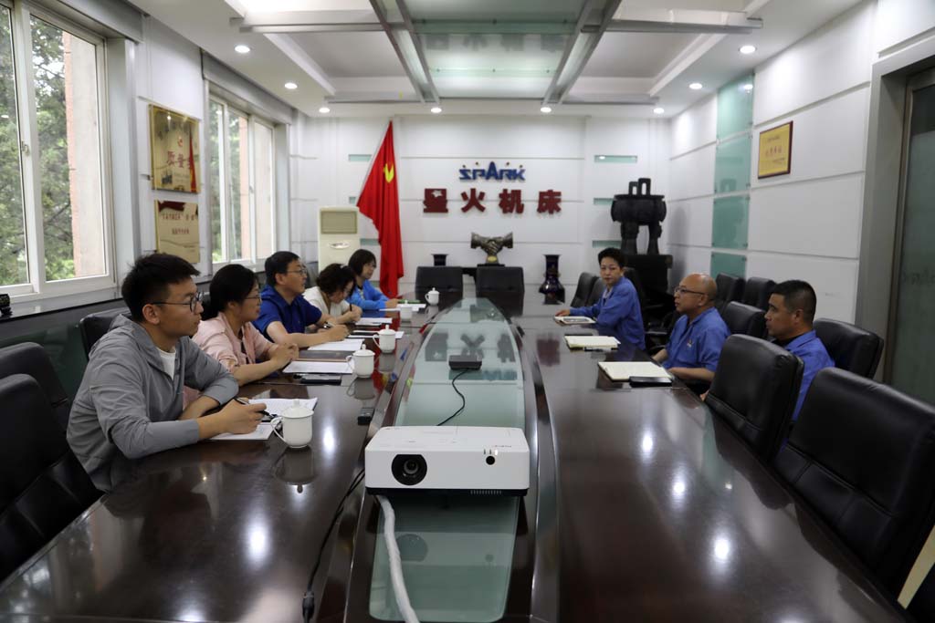 5月29日,省工信院裝備制造研究所所長藺峰,省機械冶金工會副主任焦佳慶一行來星火公司調(diào)研產(chǎn)業(yè)規(guī)模和發(fā)展趨勢、創(chuàng)新能力和技術水平及企業(yè)工會工作等方面的情況。黨委副書記、星火機床集團公司副總經(jīng)理、工會主席蔣俊及相關部門負責人陪同調(diào)研并座談交流。