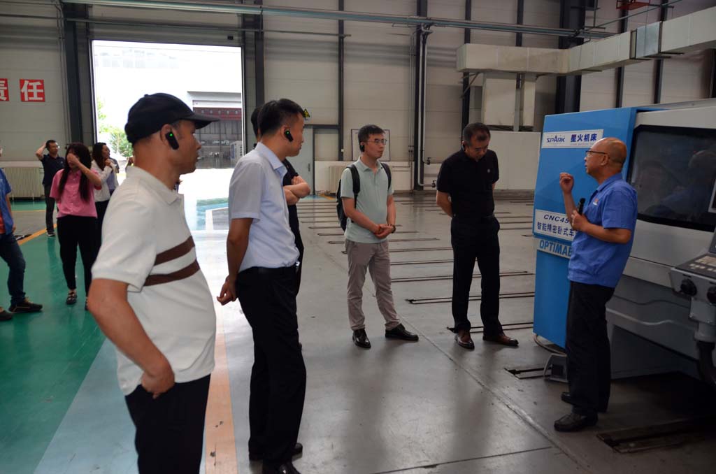 黨委副書記、星火機(jī)床集團(tuán)公司副總經(jīng)理蔣俊及行政綜合部負(fù)責(zé)人陪同參觀生產(chǎn)現(xiàn)場。