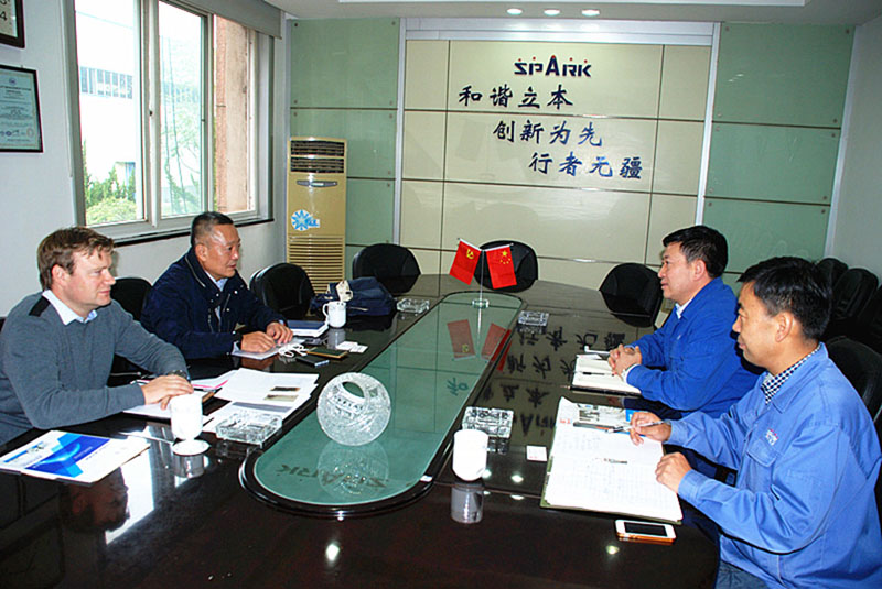 10月16日,德國一家貿(mào)易公司采購總經(jīng)理喬慶,美國公司總經(jīng)理丹尼爾一行來星火機床公司洽談強化長期合作,加快交貨進(jìn)度等事宜。星火機床集團(tuán)公司總經(jīng)理劉勝,銷售部副部長宋建文與克努特客商進(jìn)行了座談。