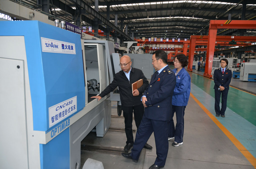 調(diào)研組一行在公司領(lǐng)導(dǎo)陪同下,先后參觀了工業(yè)園數(shù)控機(jī)床裝配現(xiàn)場(chǎng)、重型機(jī)床裝配現(xiàn)場(chǎng)和公司展廳,觀看了公司研發(fā)生產(chǎn)的數(shù)控精密車(chē)床、重型臥式車(chē)床和青重公司生產(chǎn)的車(chē)輪車(chē)床等各類(lèi)產(chǎn)品。