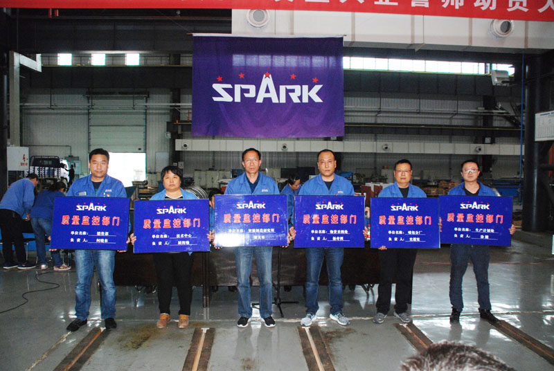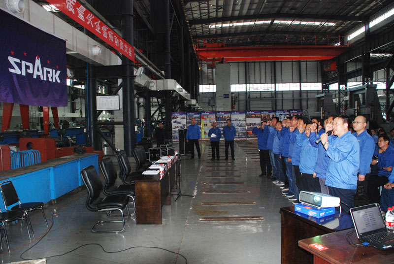 5月5日,星火公司召開“星火興亡,我的責(zé)任”質(zhì)量興企誓師動(dòng)員大會(huì)。星火集團(tuán)及星火機(jī)床公司領(lǐng)導(dǎo)蔣保權(quán)、劉勝、趙錦銘、鞠家兵、劉生玉、劉強(qiáng)、展海瑜,各處室領(lǐng)導(dǎo)、各分廠領(lǐng)導(dǎo)、班組長(zhǎng)等骨干人員、計(jì)量檢查處全體員工240余人參加大會(huì)。星火集團(tuán)黨委副書記、副總經(jīng)理蔣俊主持會(huì)議。