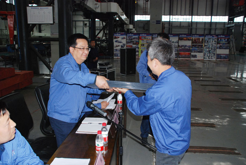 星火集團(tuán)董事長(zhǎng)蔣保權(quán)向被確定的質(zhì)量監(jiān)控部門、班組和質(zhì)量監(jiān)控點(diǎn)授牌。